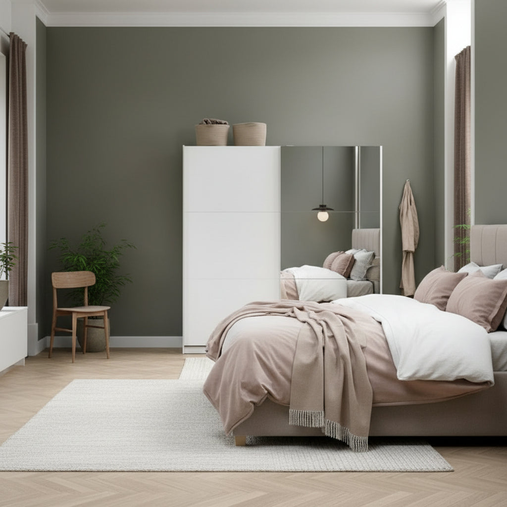 Cet armoire offre un espace de rangement luxueux avec ses deux grandes portes coulissantes, dont une face miroir, permettant de...