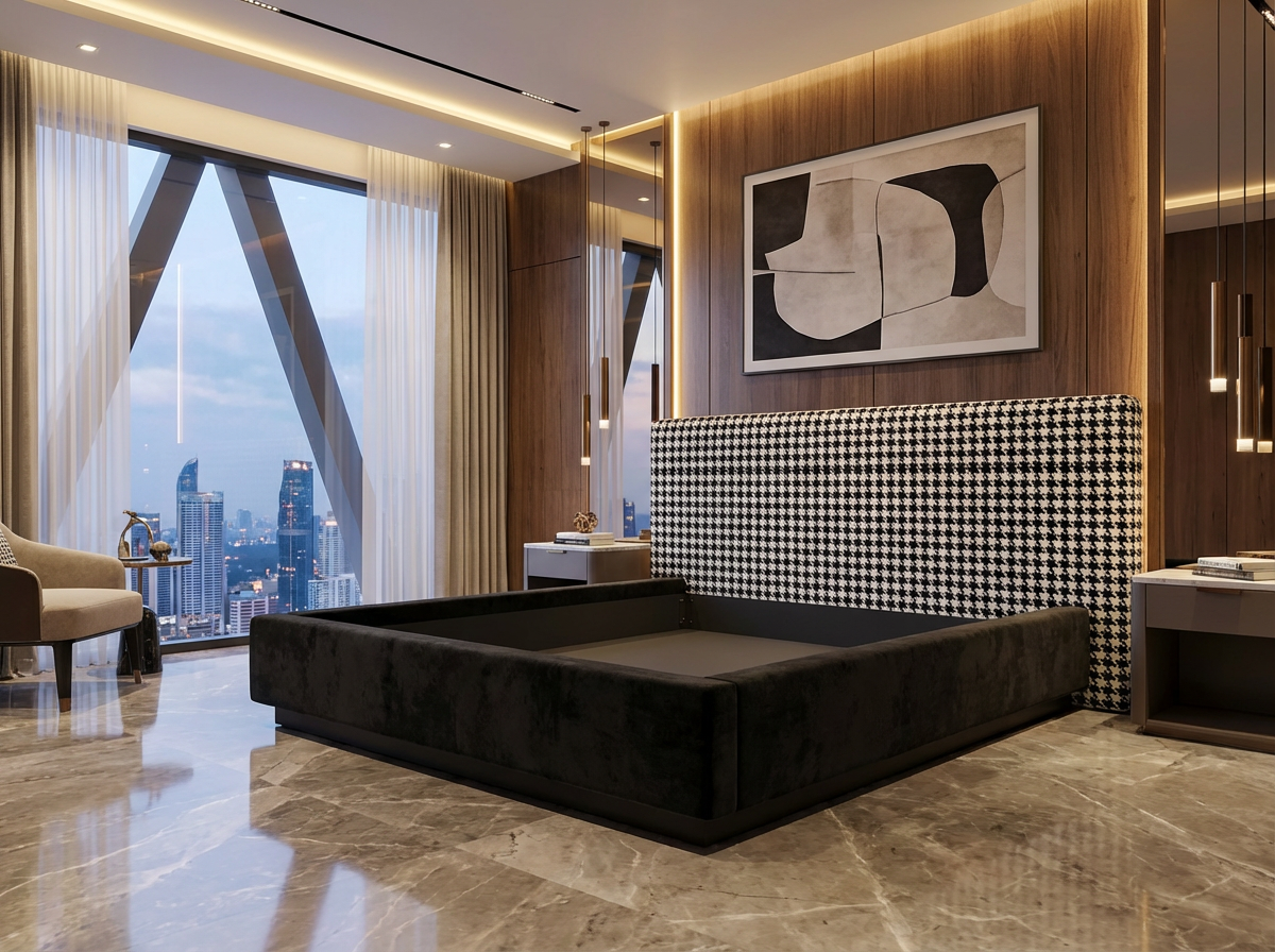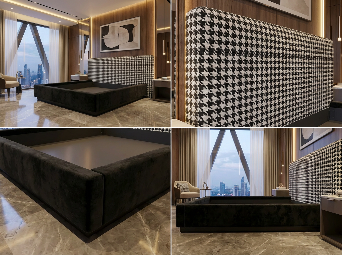 Cadre de Lit Luxueux Rembourré en Velours à Motif Baroque/Floral - Design "Bubble" - Tailles Queen et King