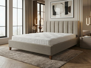 Cadre de Lit Moderne Cannelé en Tissu Texturé Gris Clair/Taupe - Tête de Lit Haute (Ribbed) - Tailles Queen et King