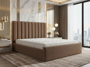 Cadre de Lit Moderne Cannele en Tissu Texturé Marron/Taupe - Tête de Lit Haute (Ribbed) - Tailles Queen et King